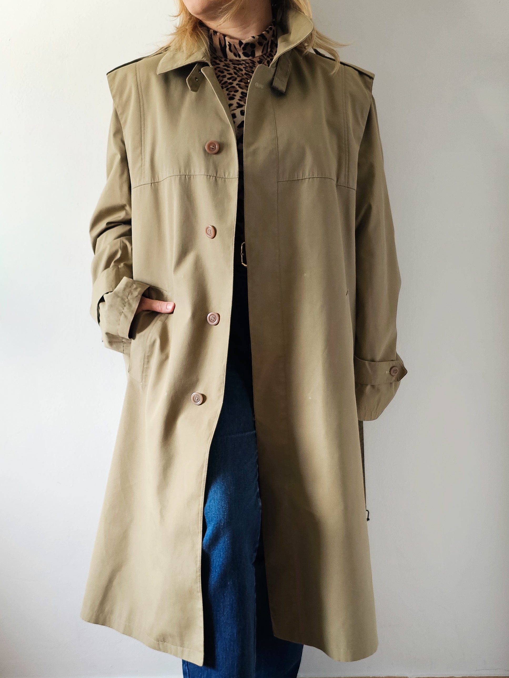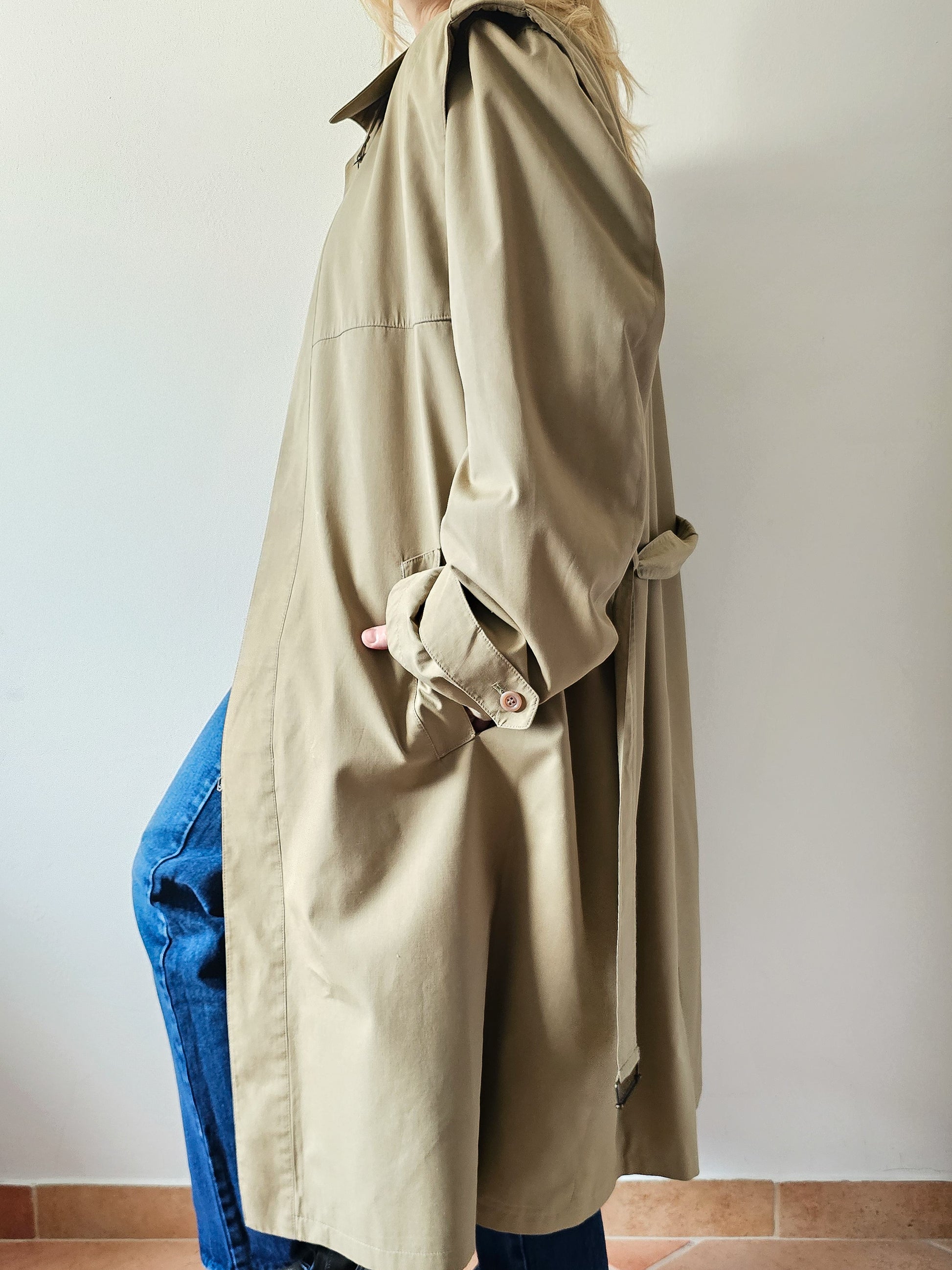 Moški trenč s pasom in snemljivo podlogo, znamke Impermeabili Incom.