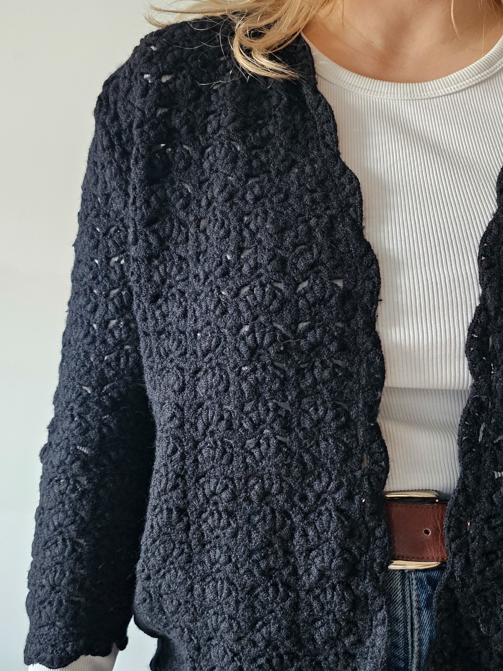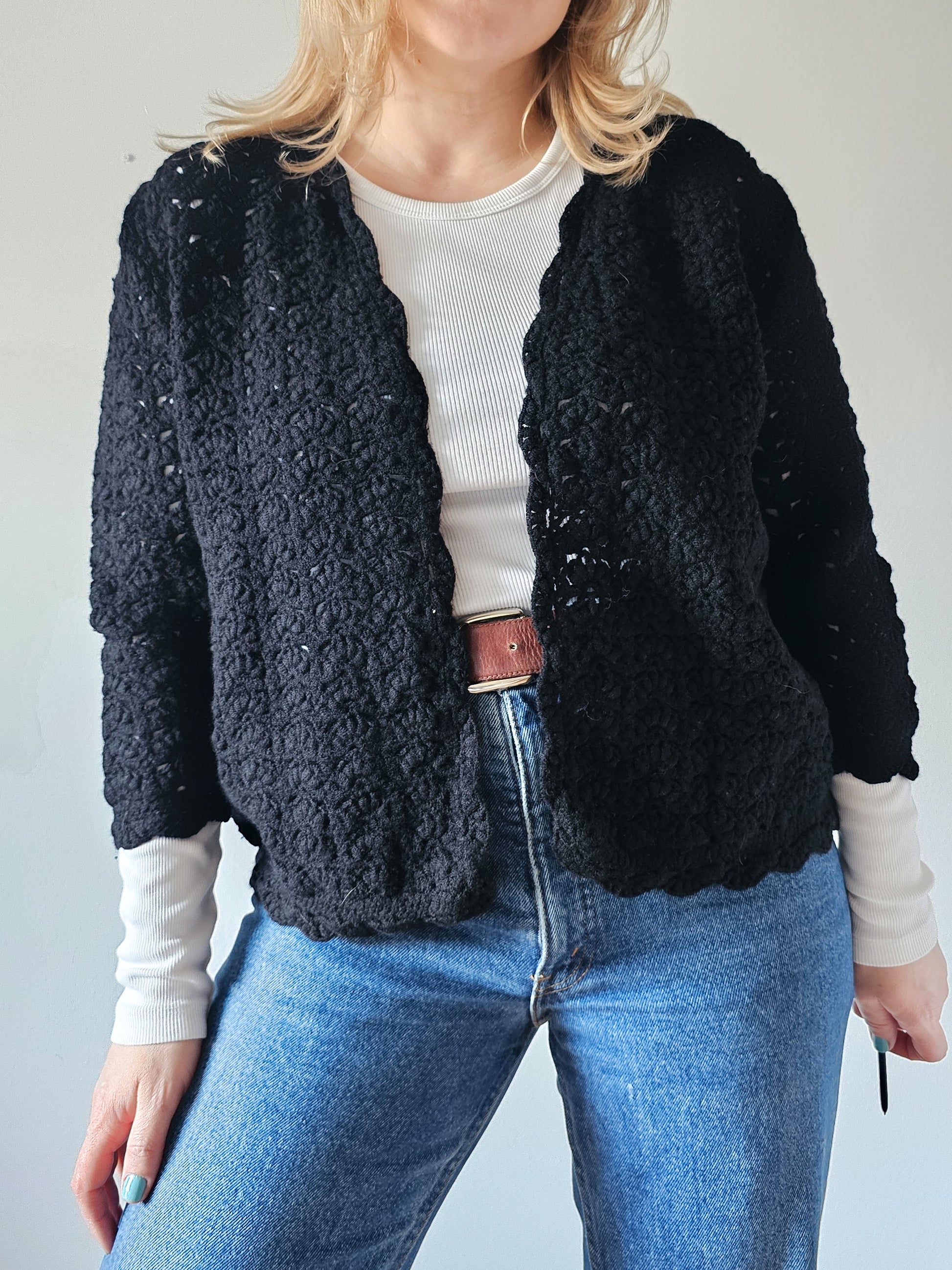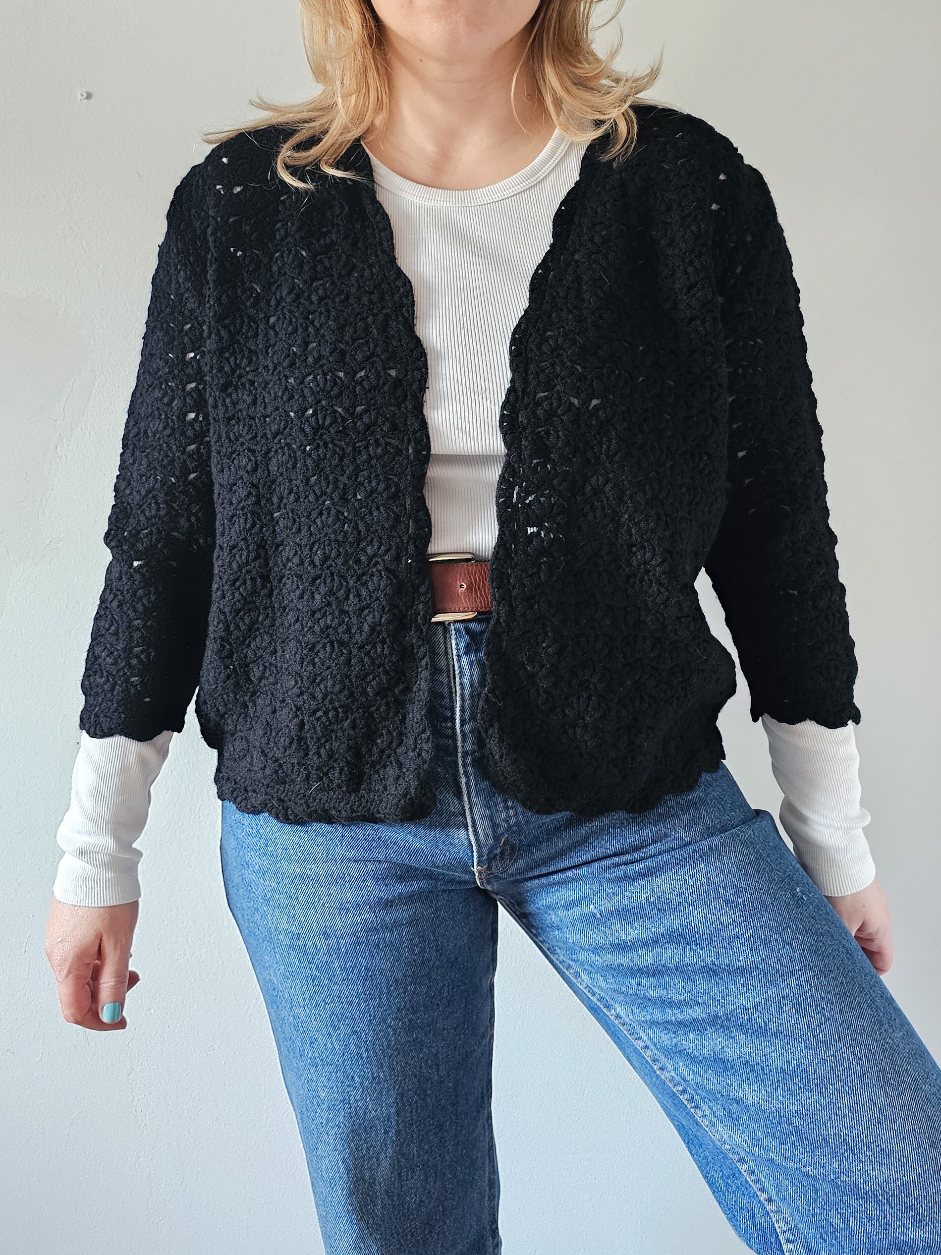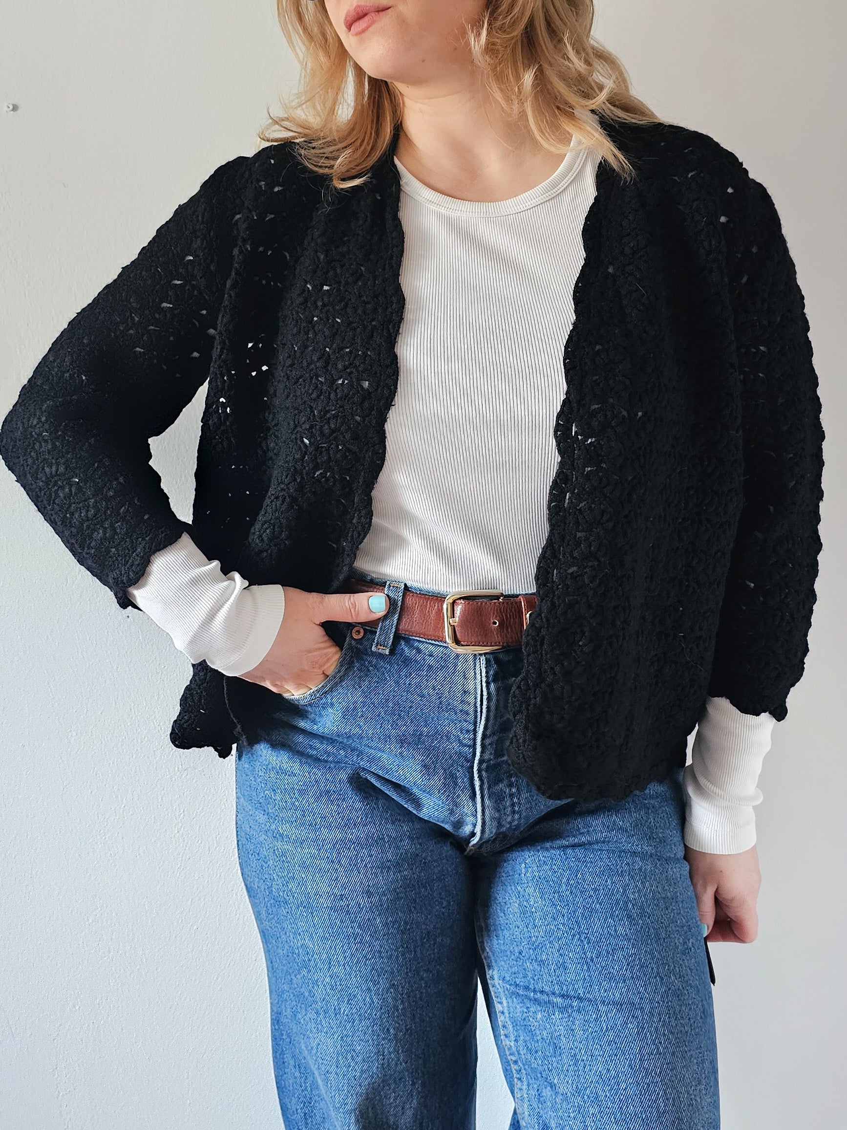 Ženska pletena jopa s 3/4 rokavi