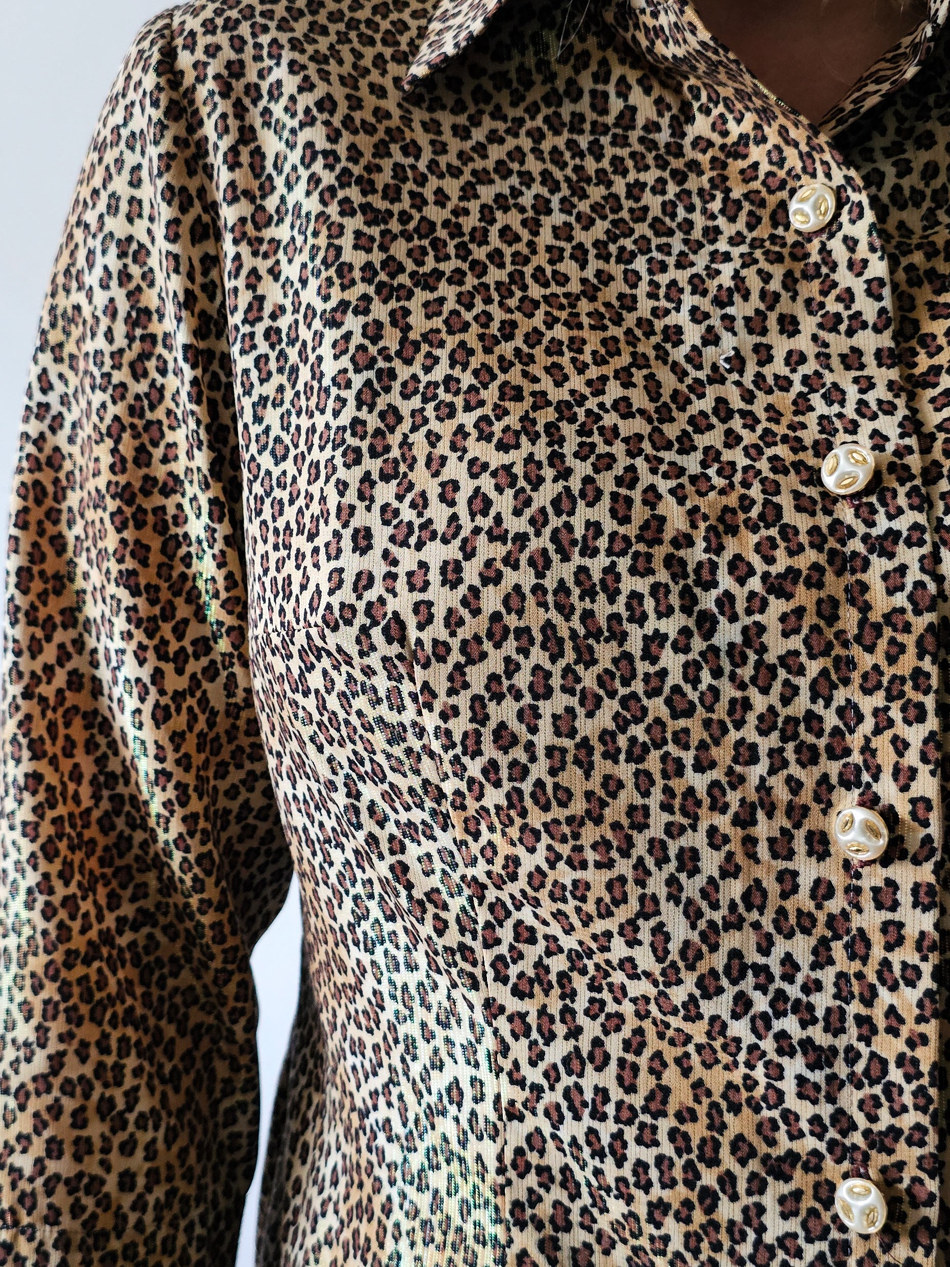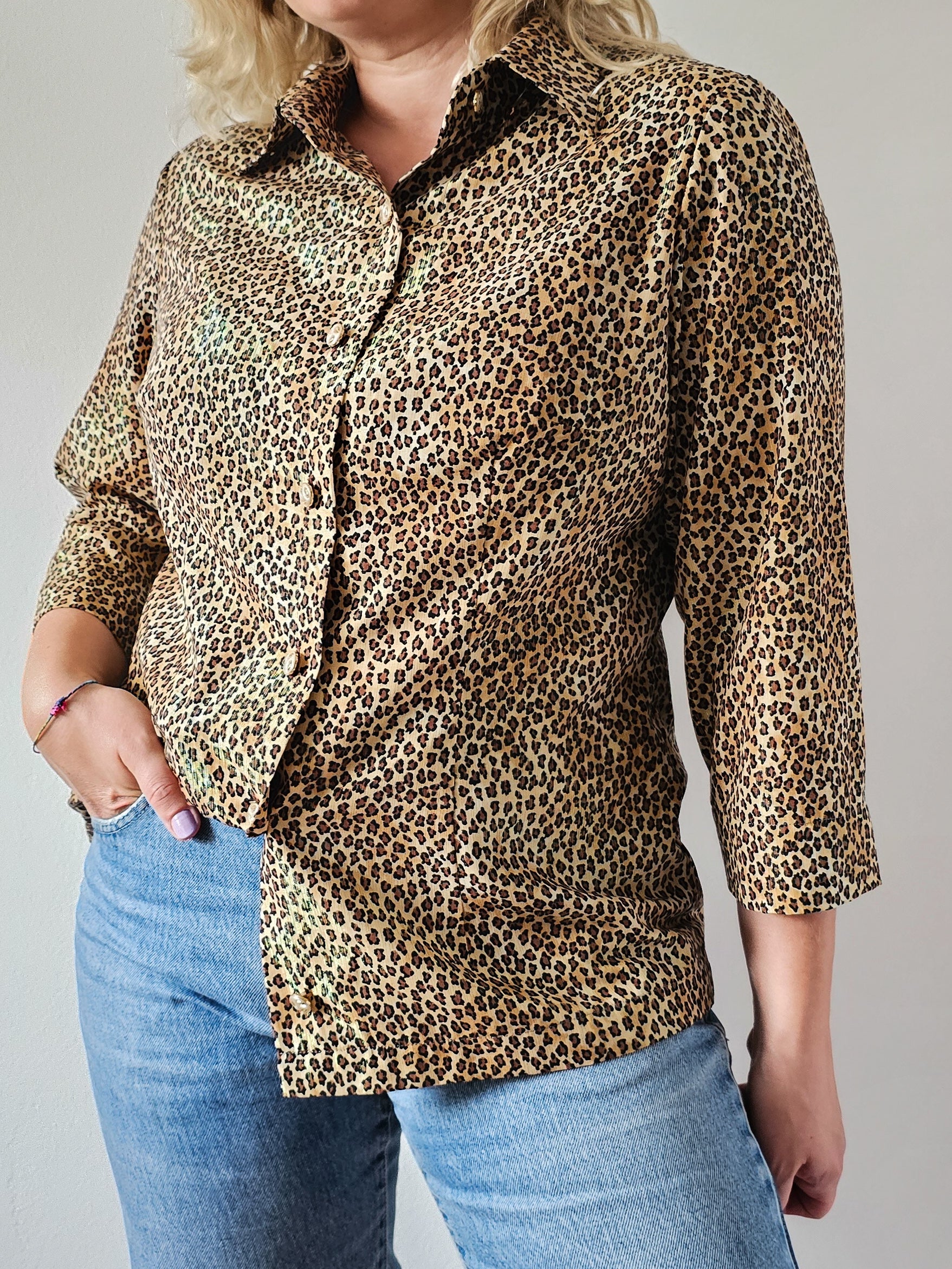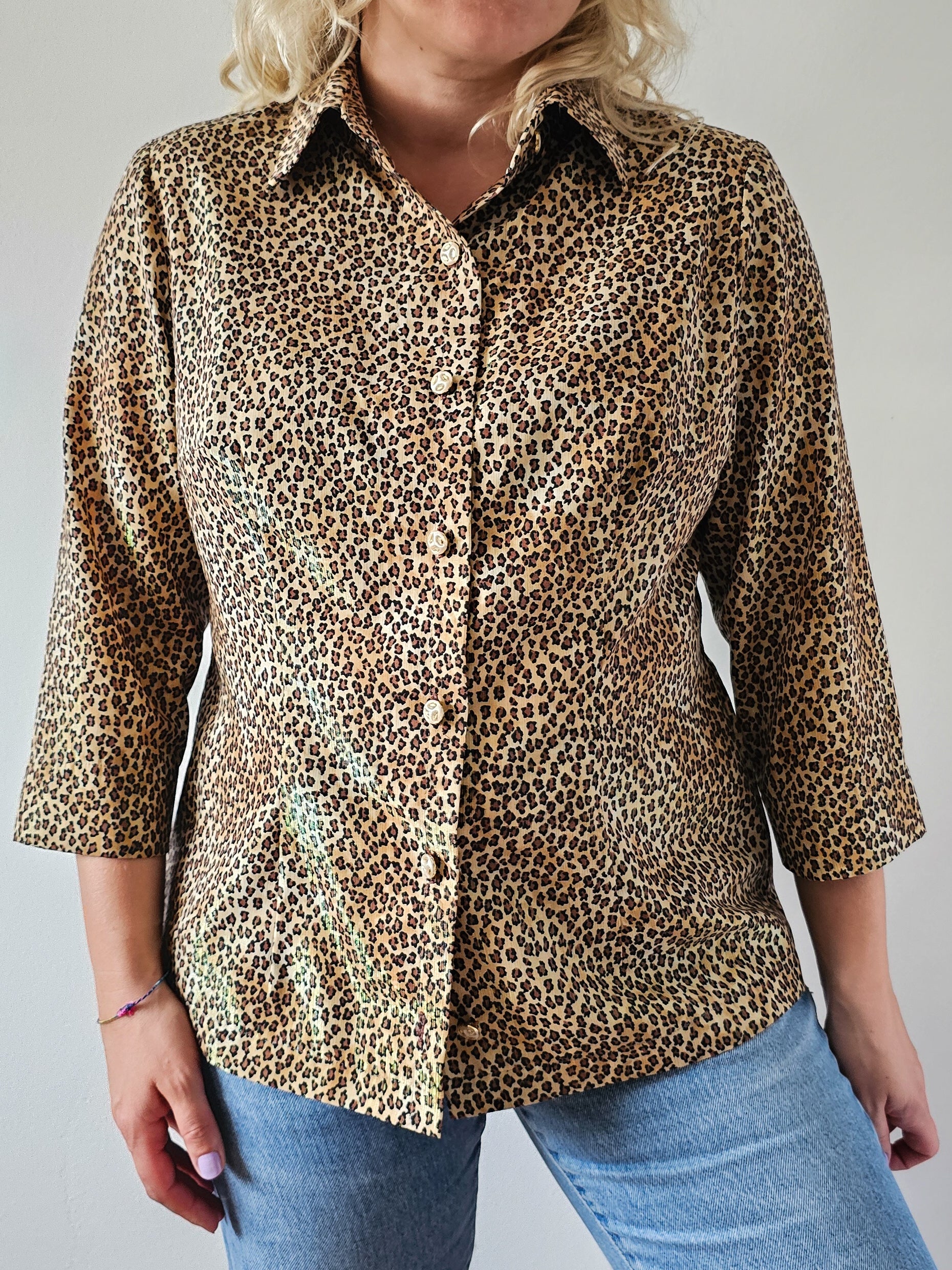 Ženska bluza, izdelana pri šivilji. Svetleča tkanina.