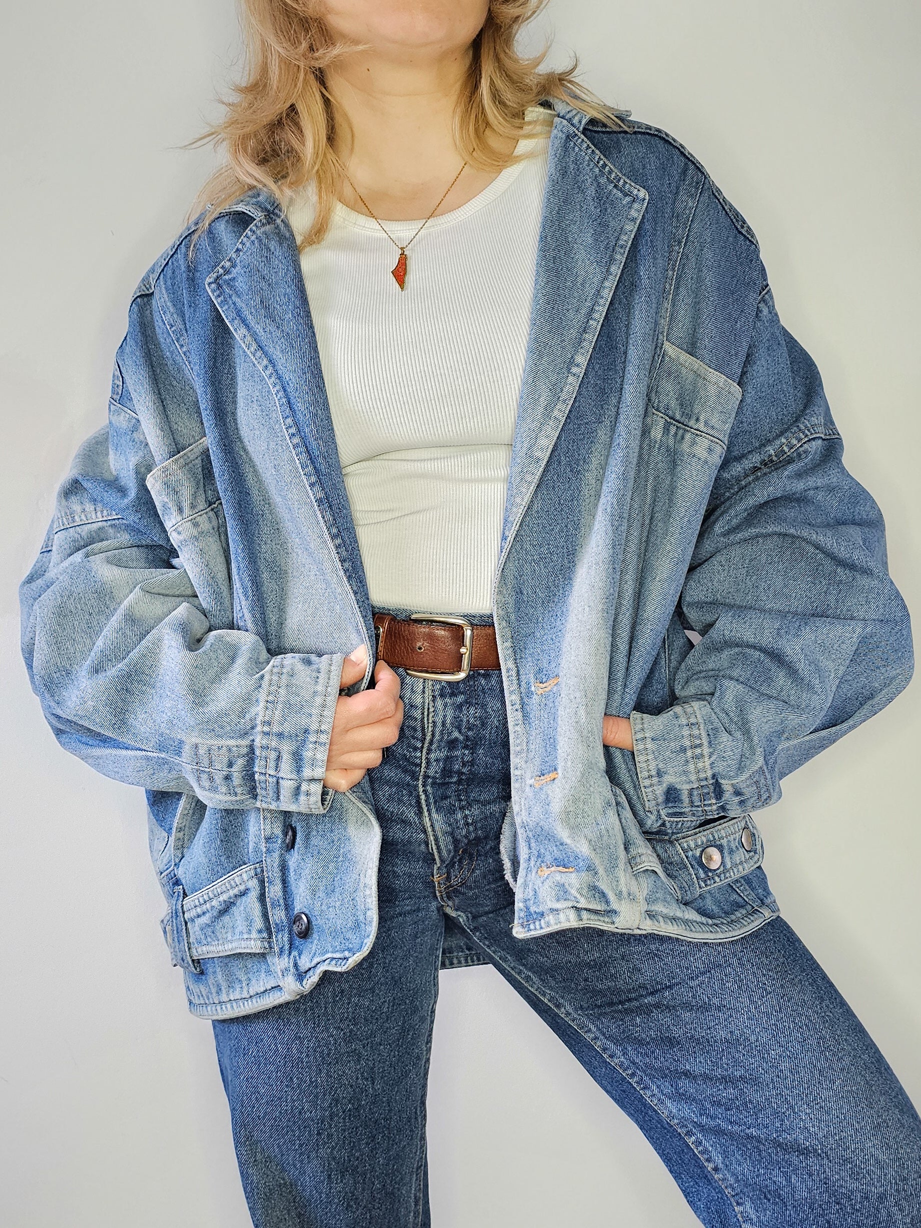Moška denim jakna znamke Borac Travnik. Izdelana v Jugoslaviji.