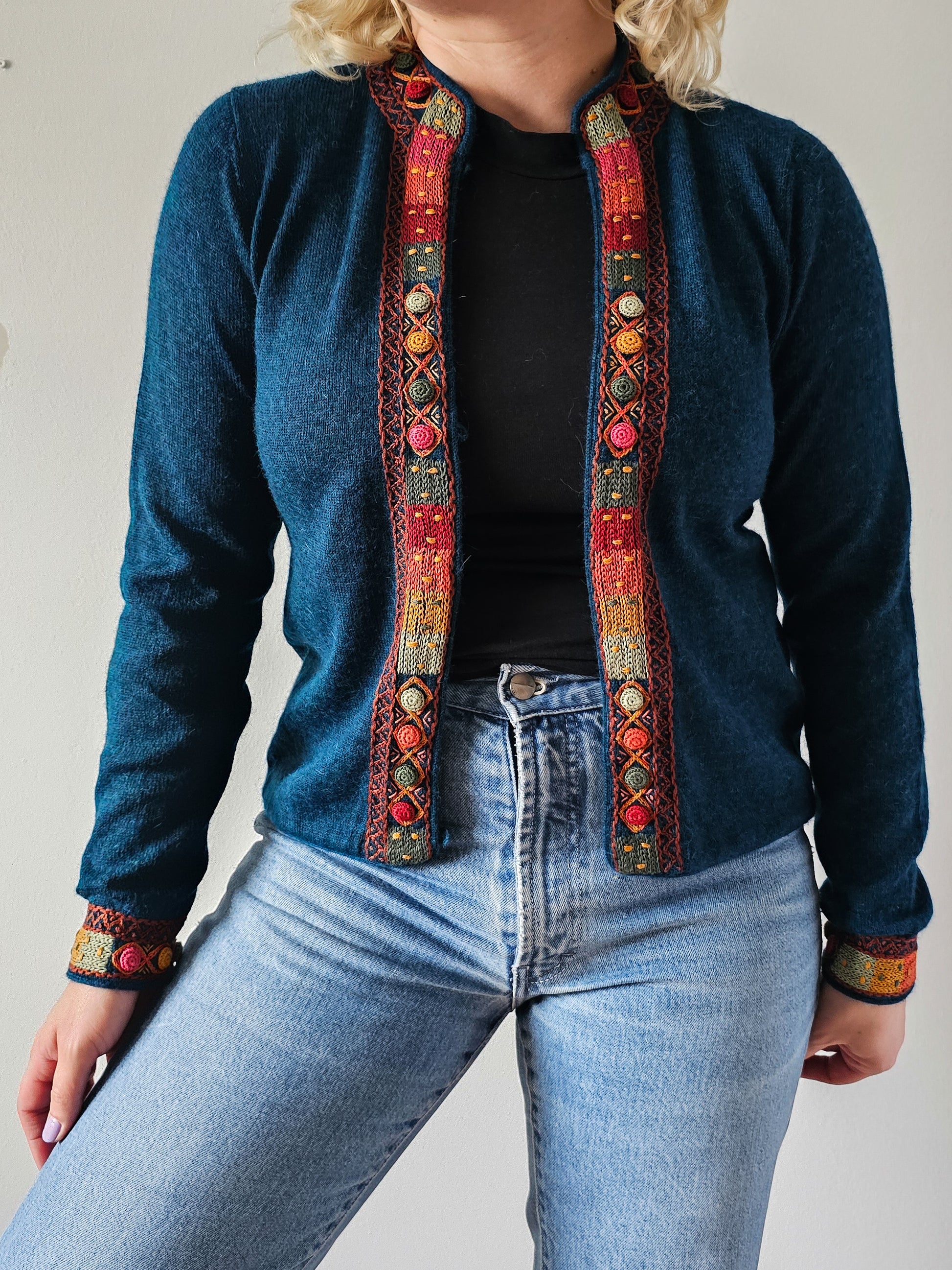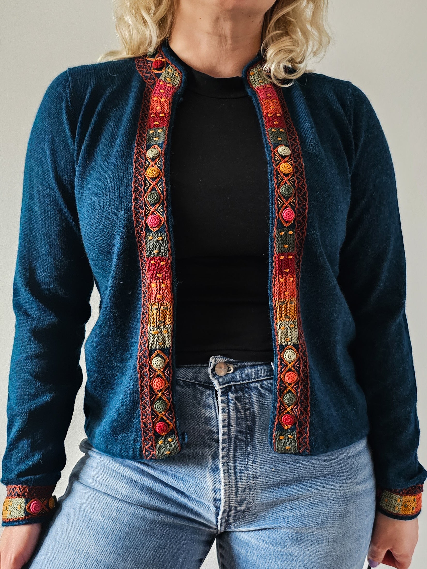 Ženska jopica, znamke Alpandina, z vezenjem. Izdelana v Peruju.