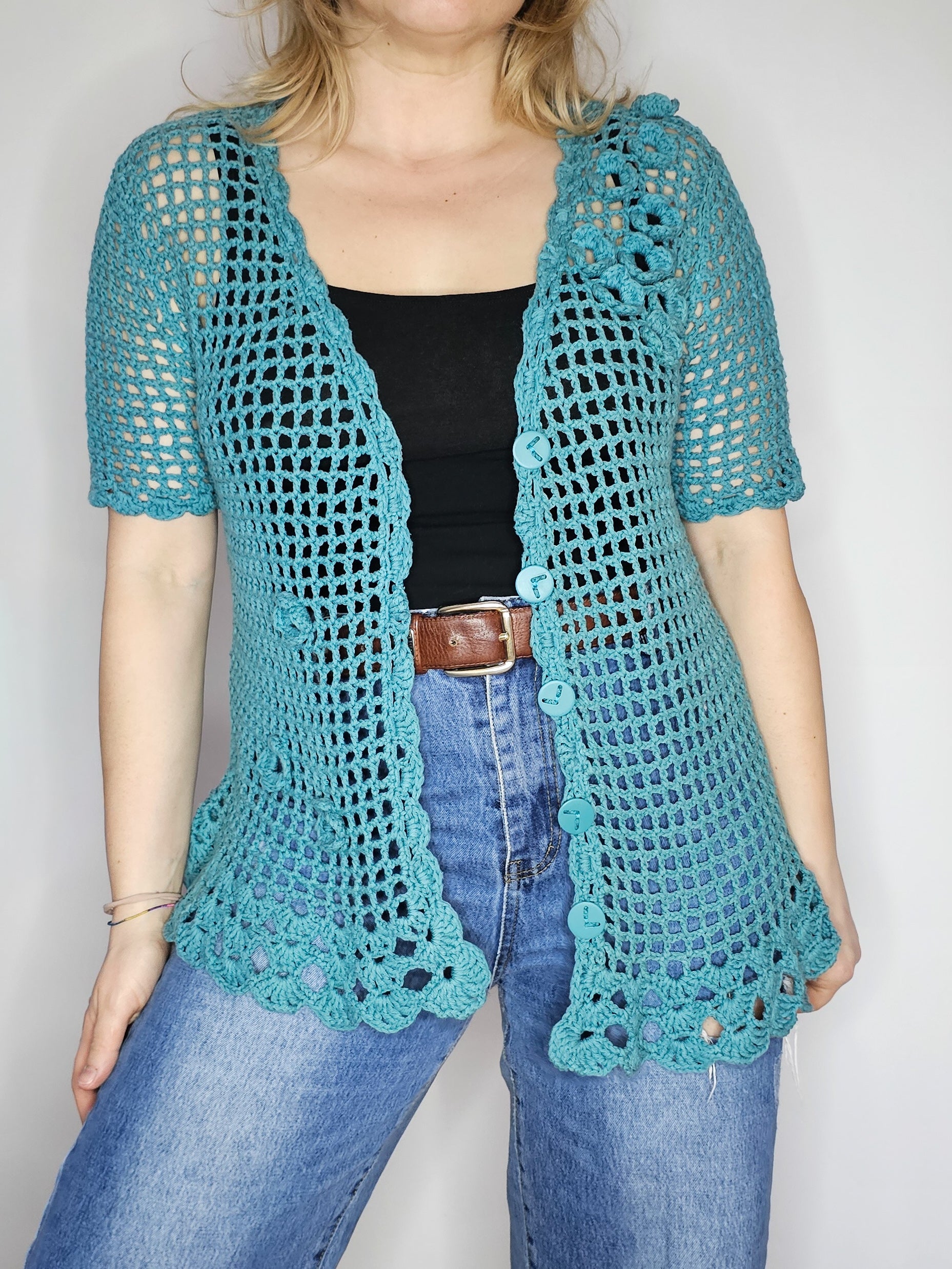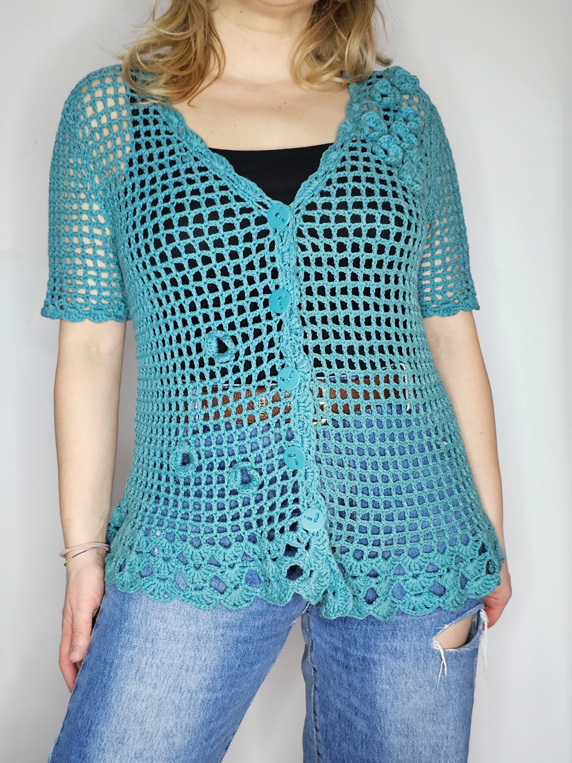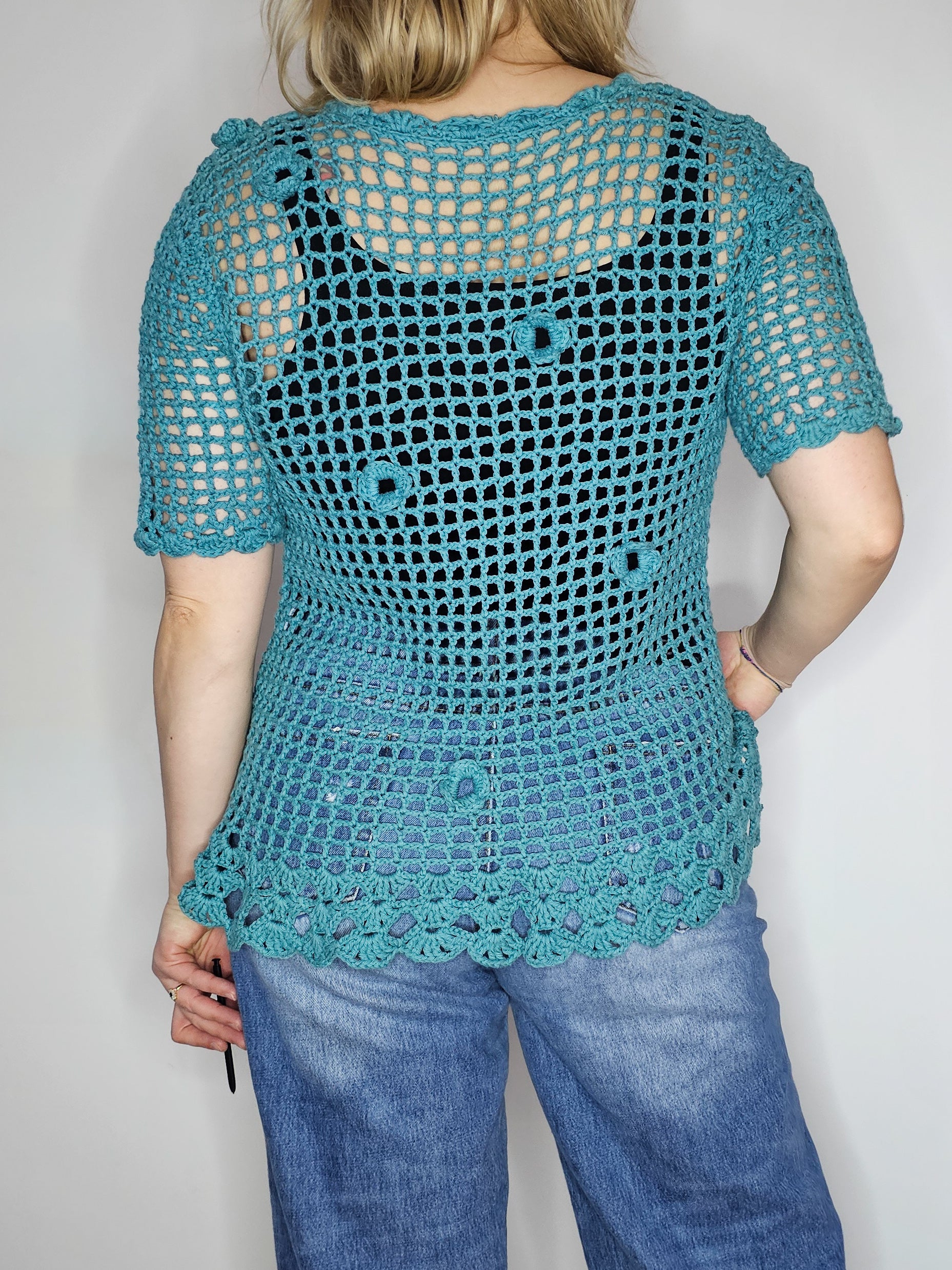 Ročno kvačkana mrežasta jopa