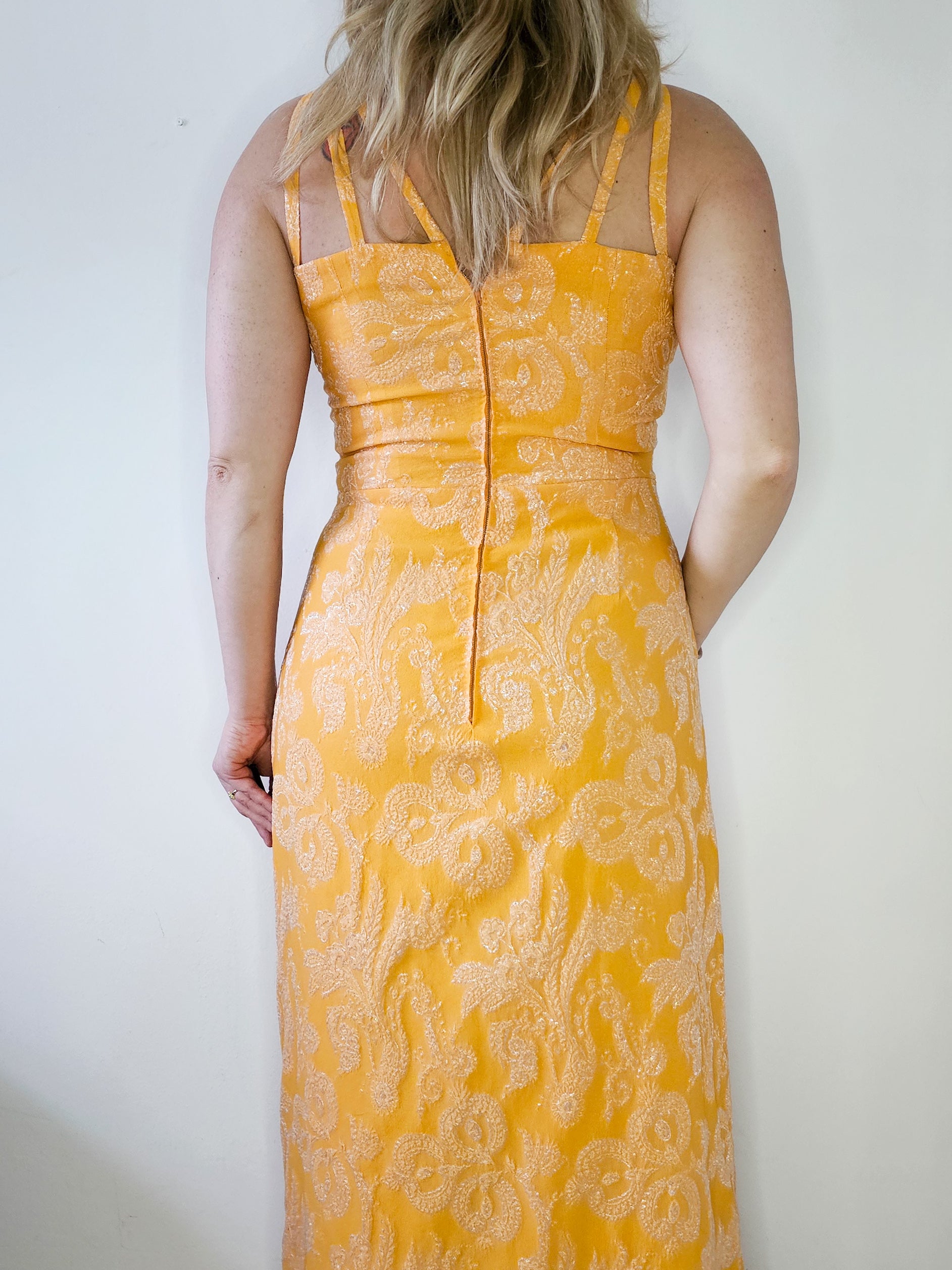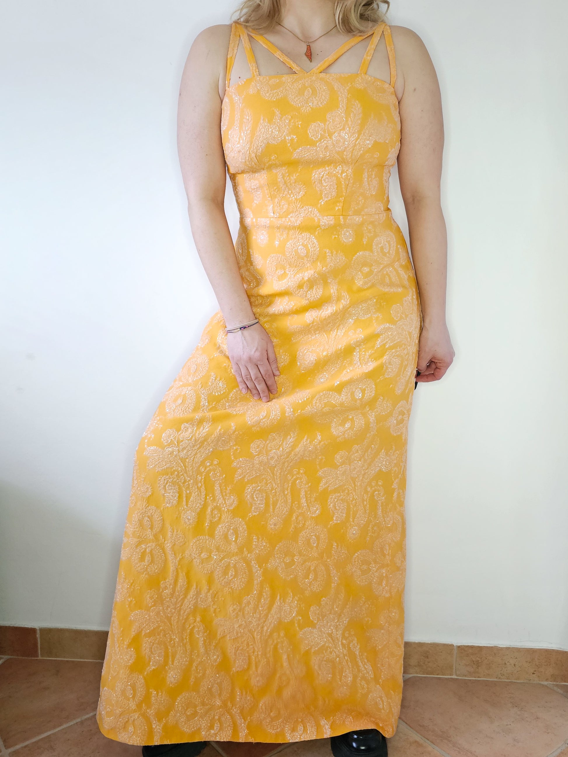 Maksi obleka, izdelana pri šivilji.