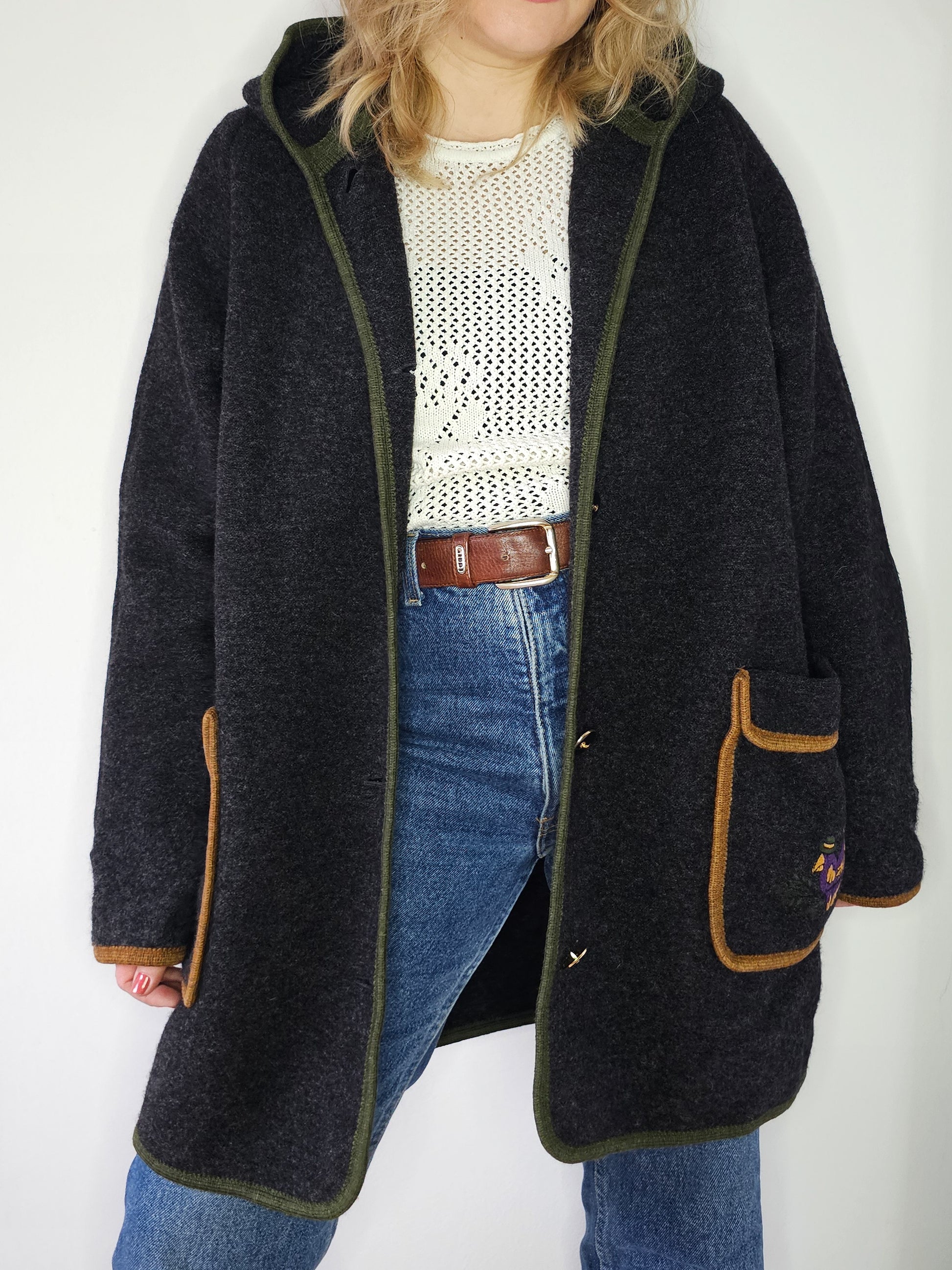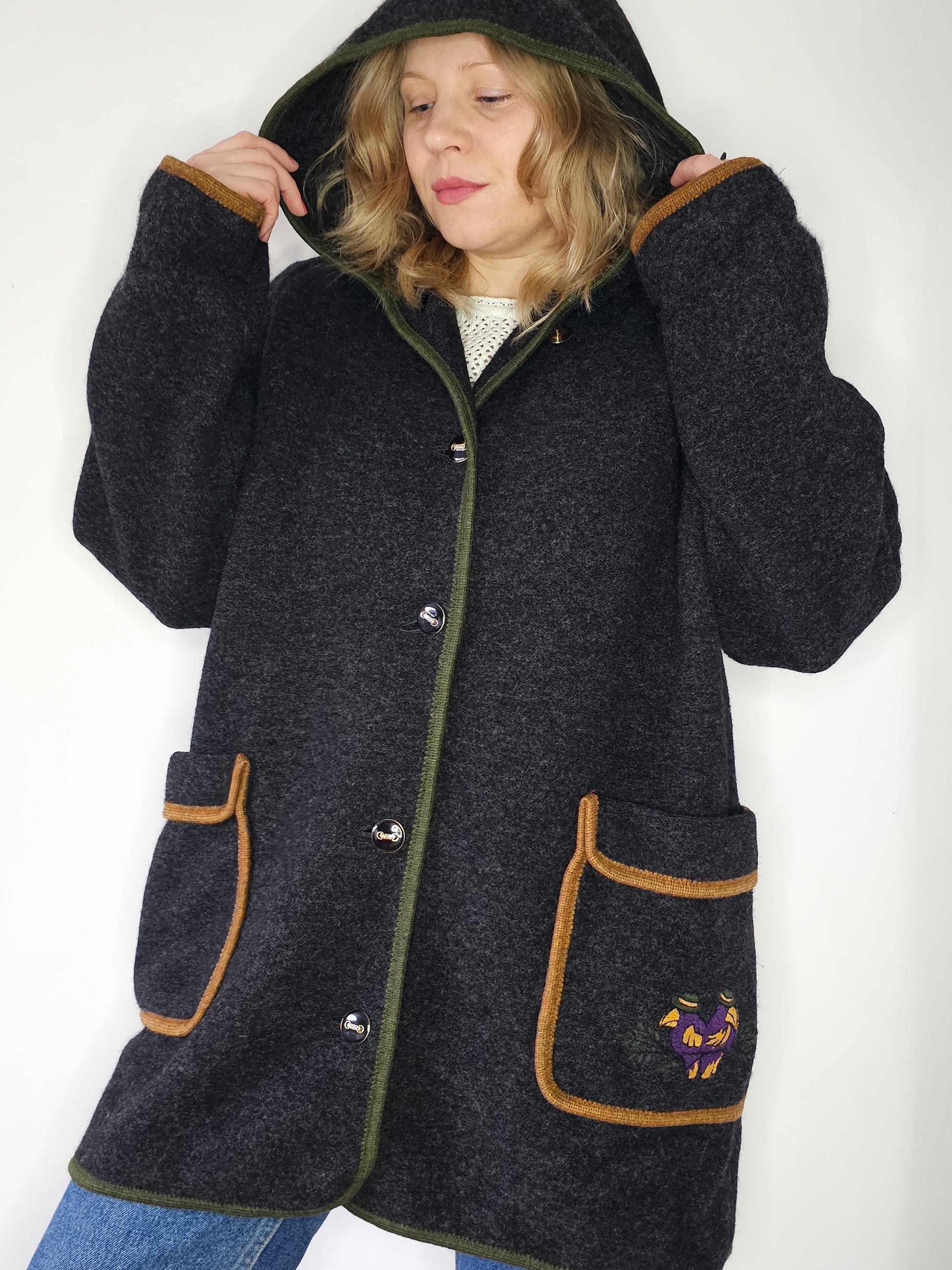 Ženski tirolski plašč s kapuco, znamke Kitz-Pichler. Izdelan v Avstriji.