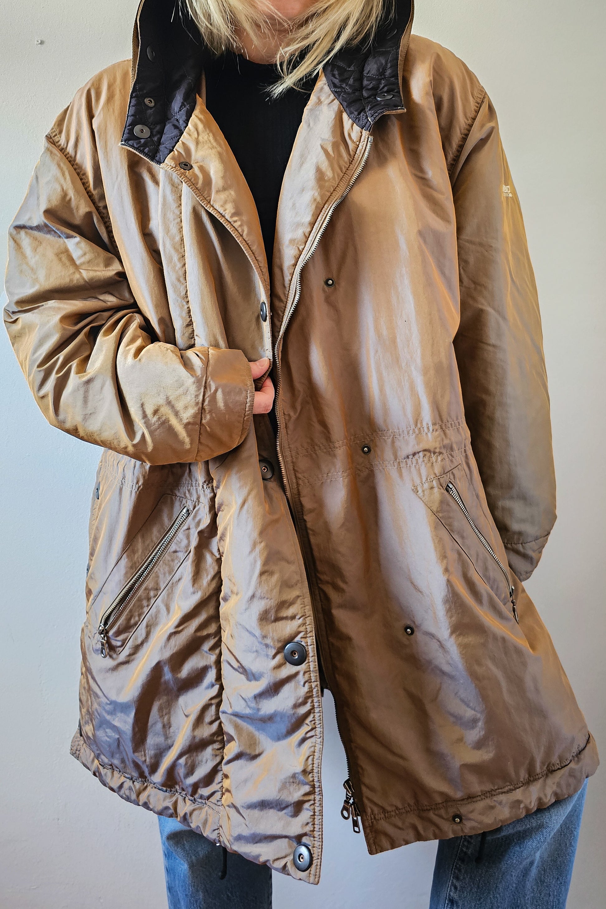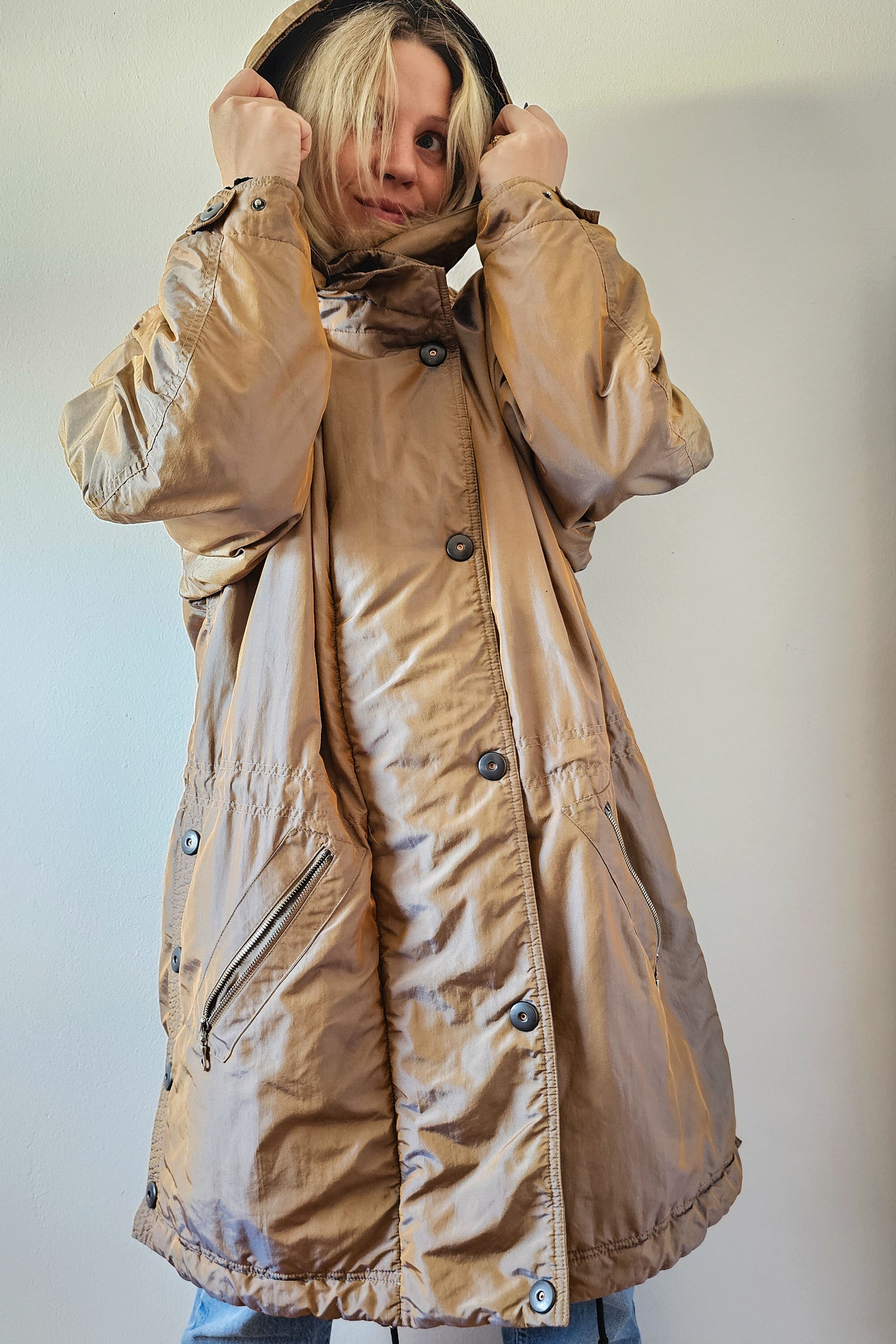 Ženski plašč, znamke Head Sports Wear, s kapuco in prilagodljivim pasom. Izdelana v Avstriji.