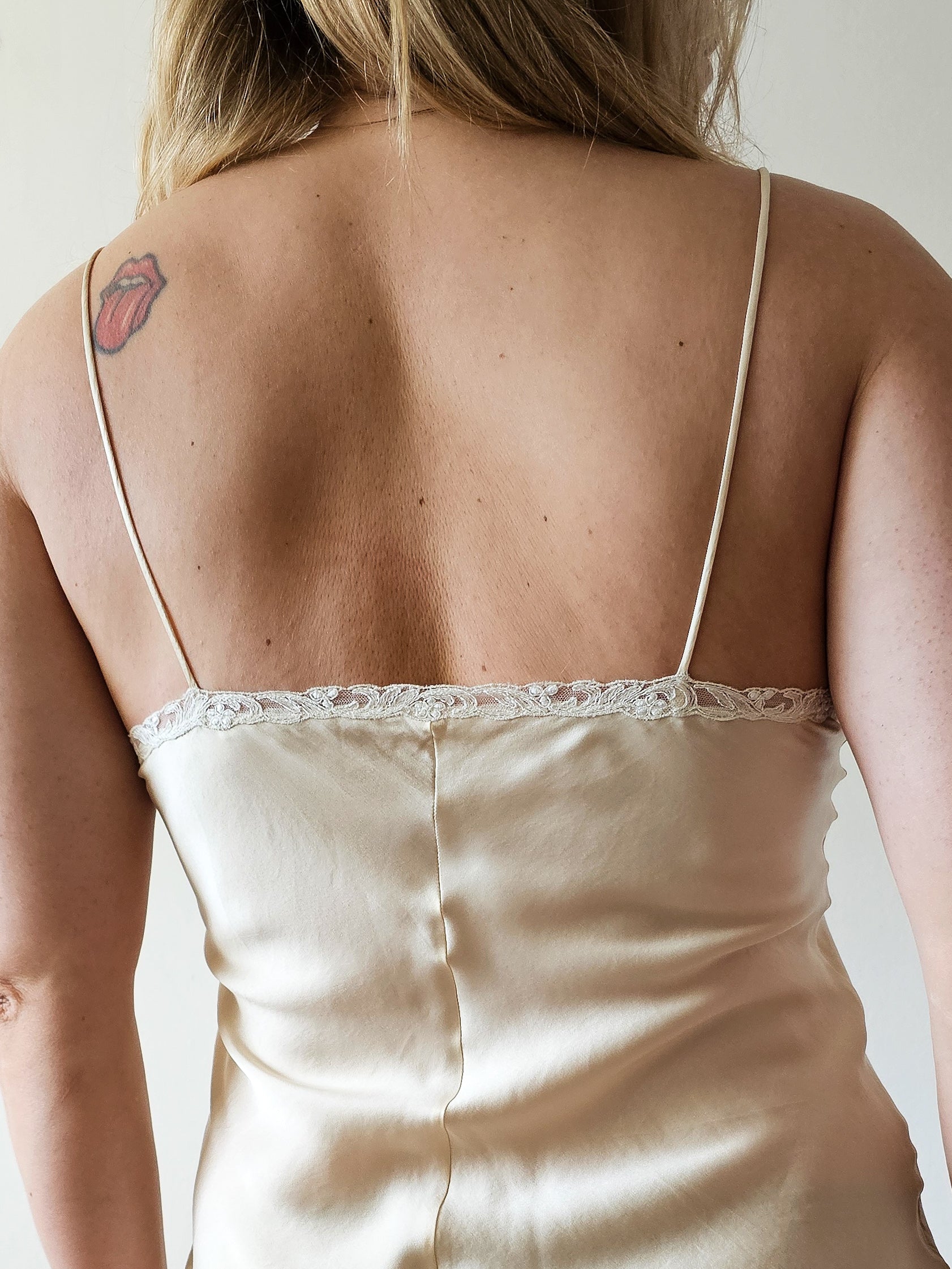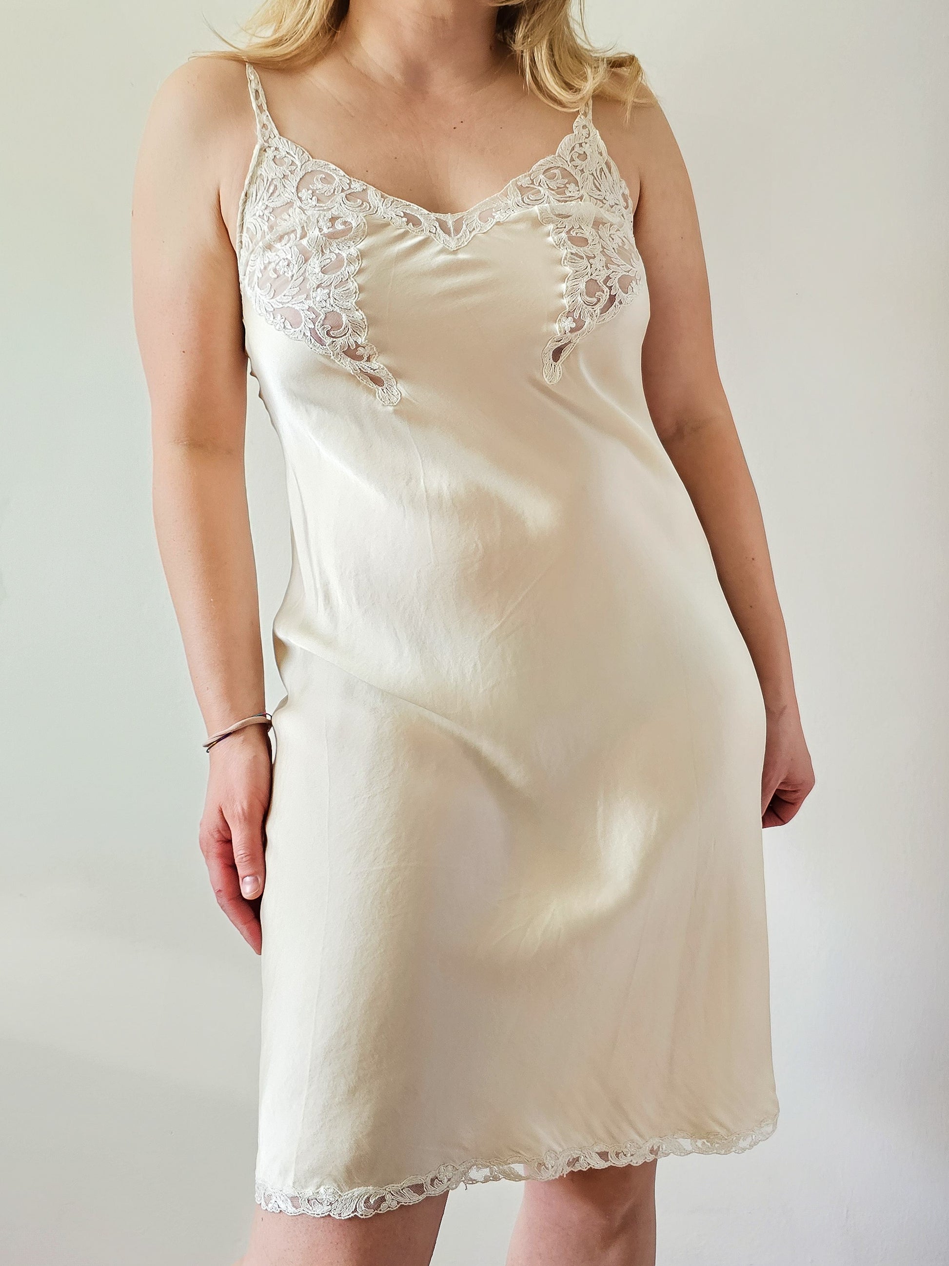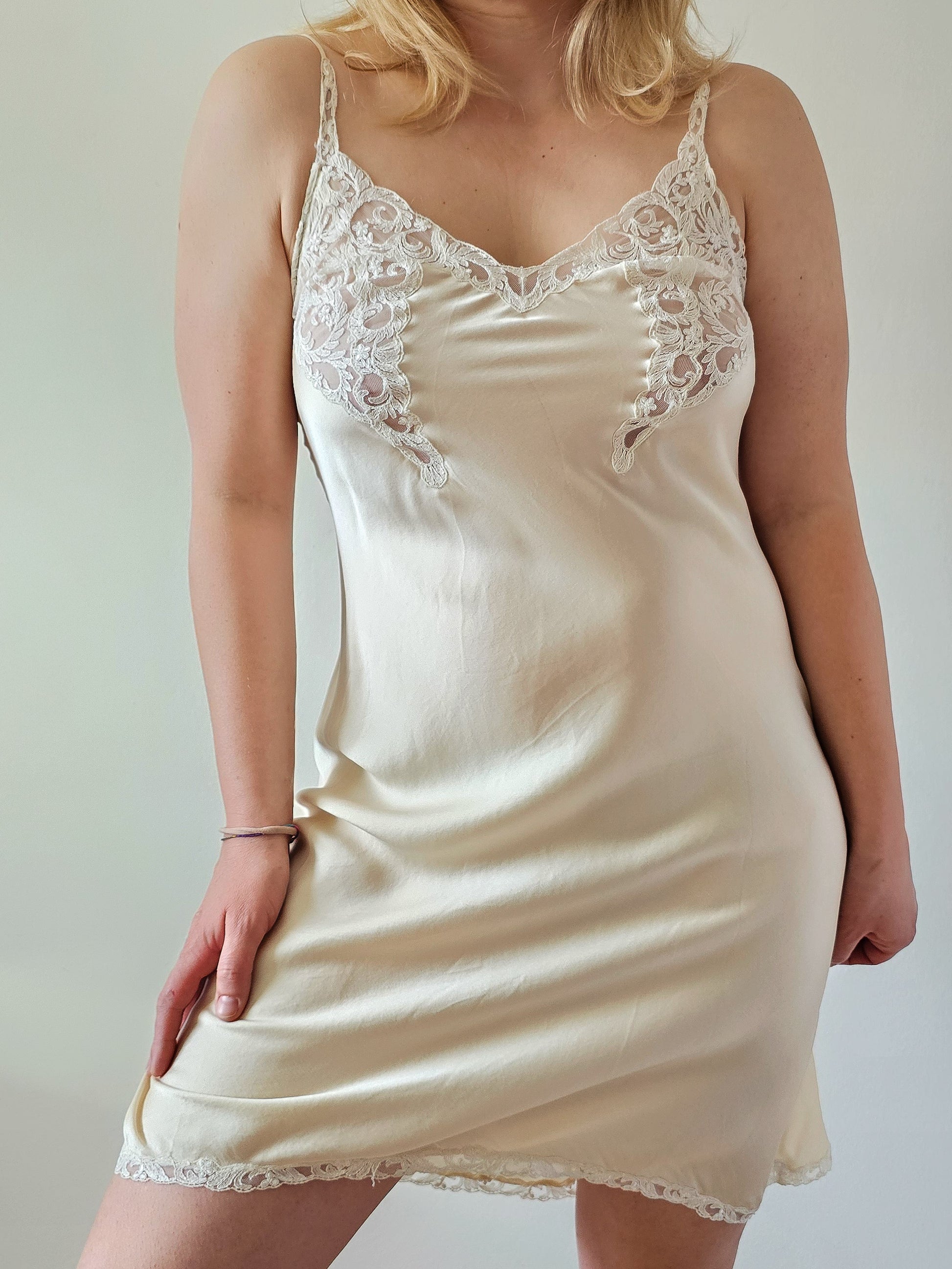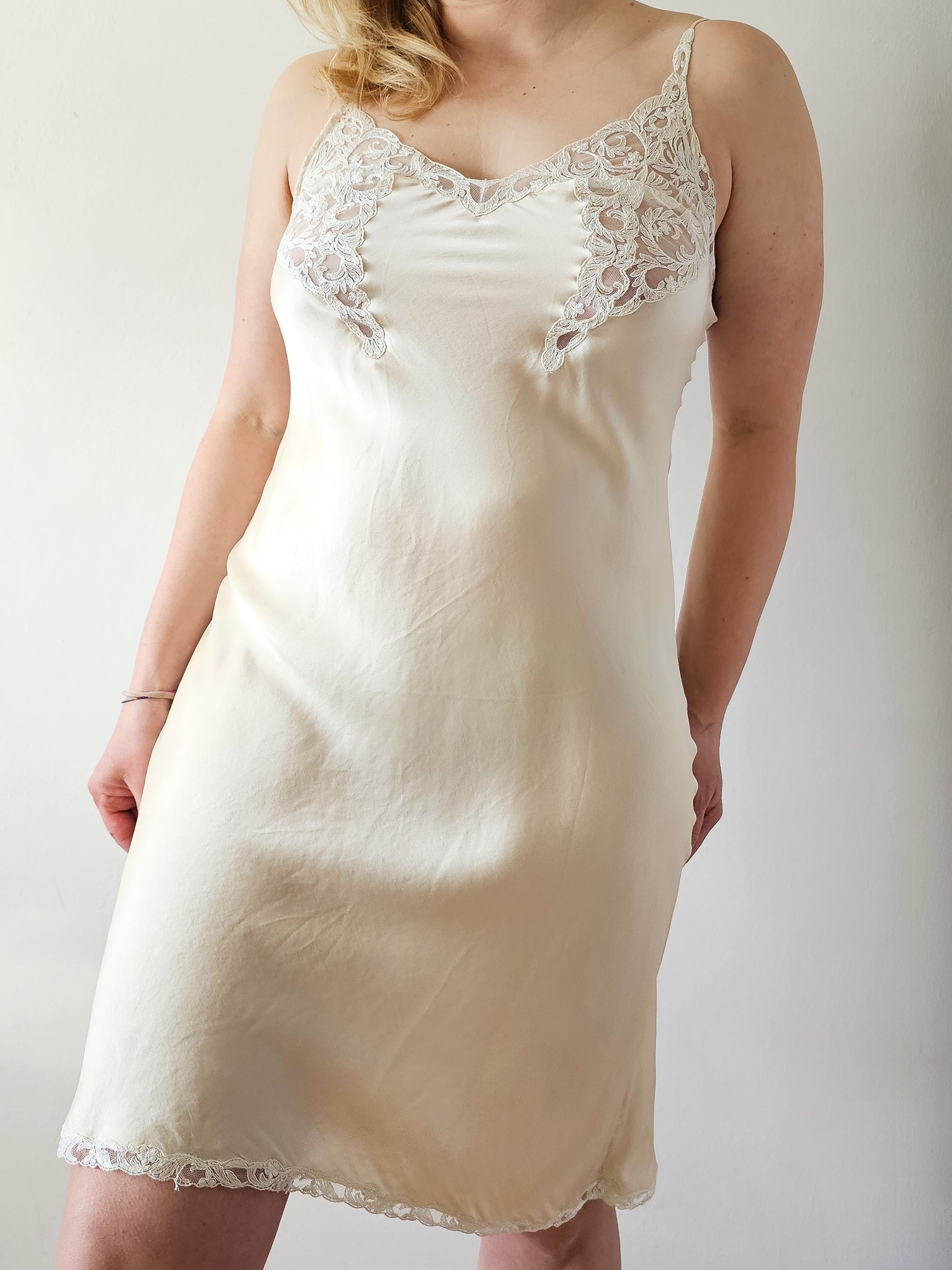 Satenaska spalna srajca s čipko, znamke La Perla, izdelana v Italiji.